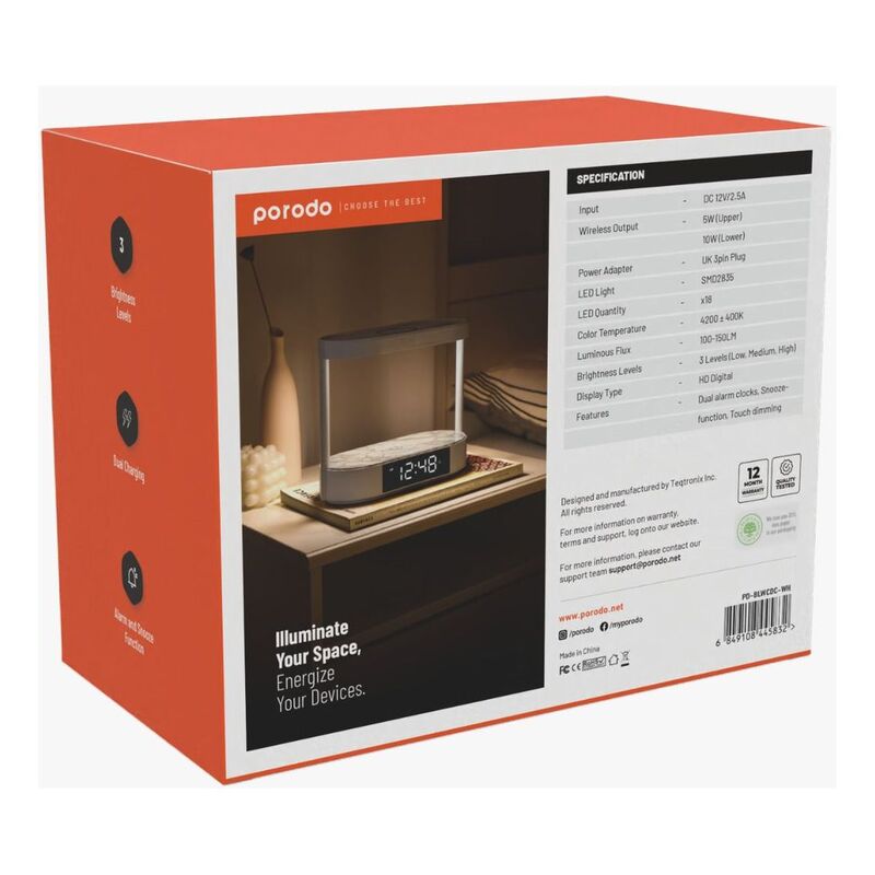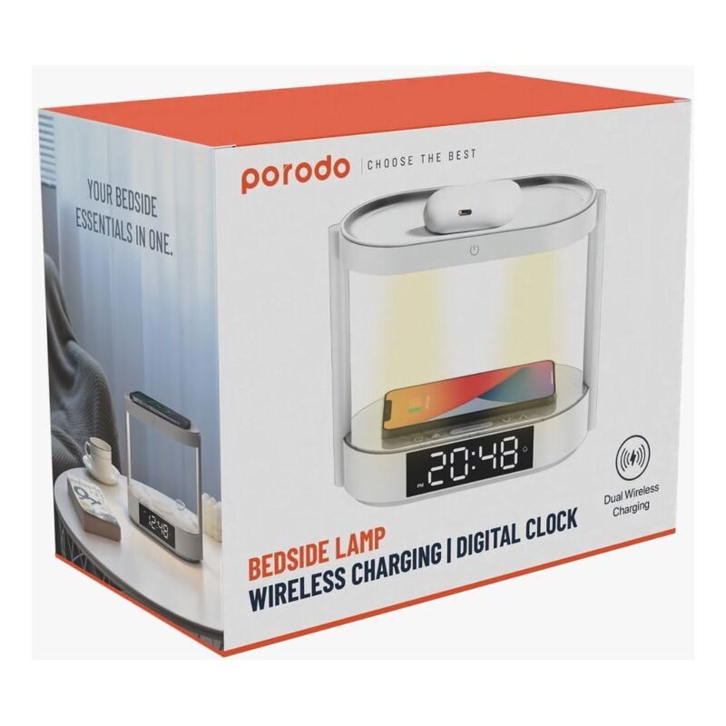 Porodo Bedside Lamp Wireless Charging & Digital Clock - White