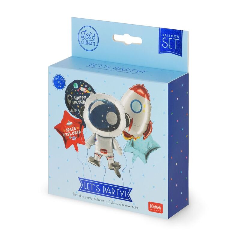 Legami Set of 5 Birthday Party Balloons - Let's Party! - Space