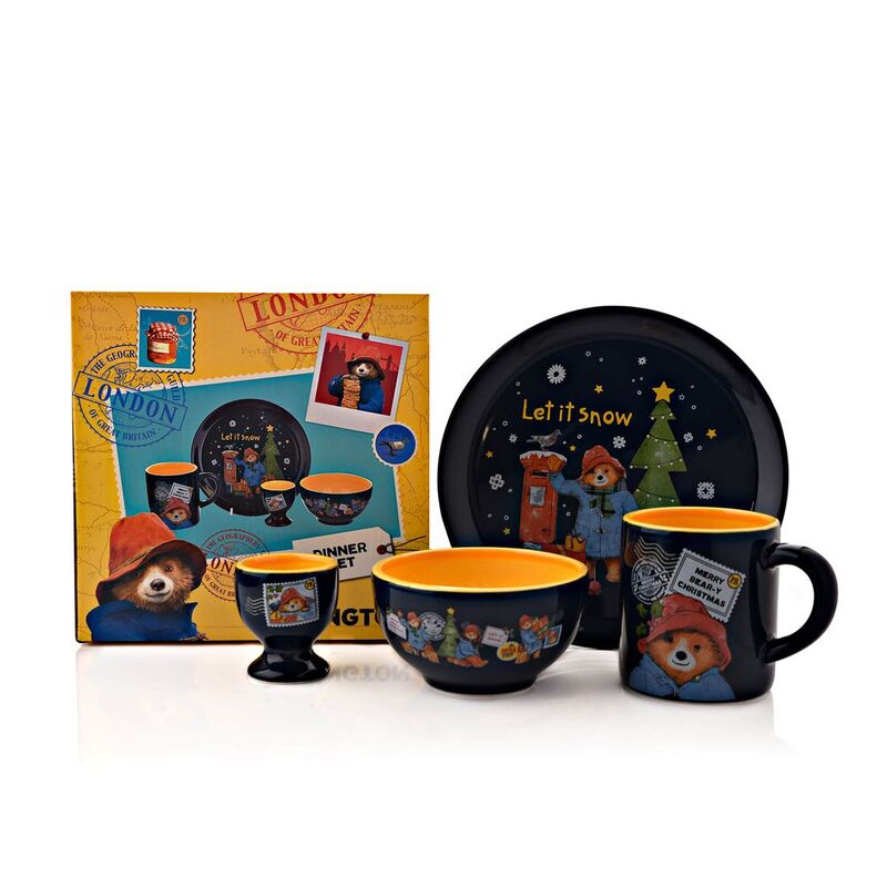 A perfect gift set for little Paddington lovers, this adorable ceramic dinner set will bring some delightful festive joy to dinner time. With a plate, bowl, mug, and eggcup all featuring festive paddington decals, bring some Christmas fun to any little one's food!Details:Paddington Dinner Set festive and fun designSet includes a bowl, plate, mug, and eggcup.