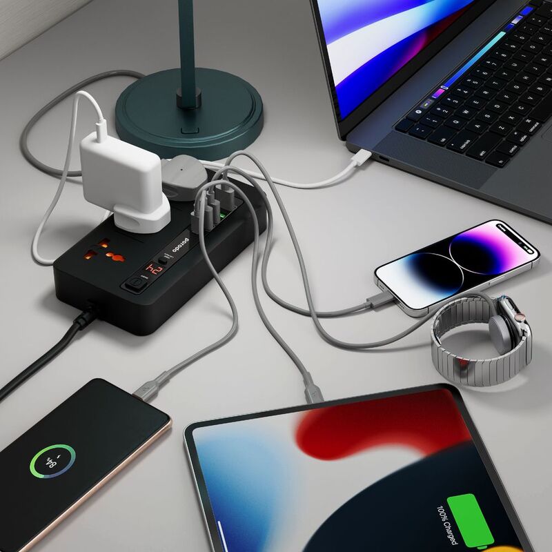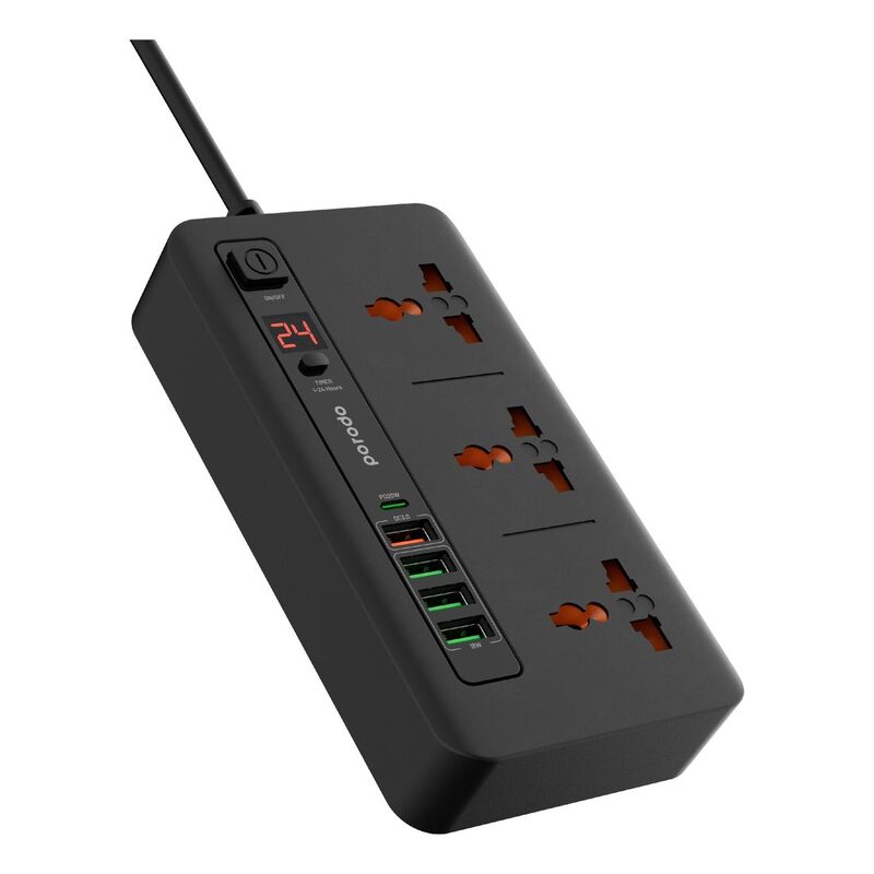 Porodo Universal 3AC-Port Power Socket & Extension Cord 2m - Black