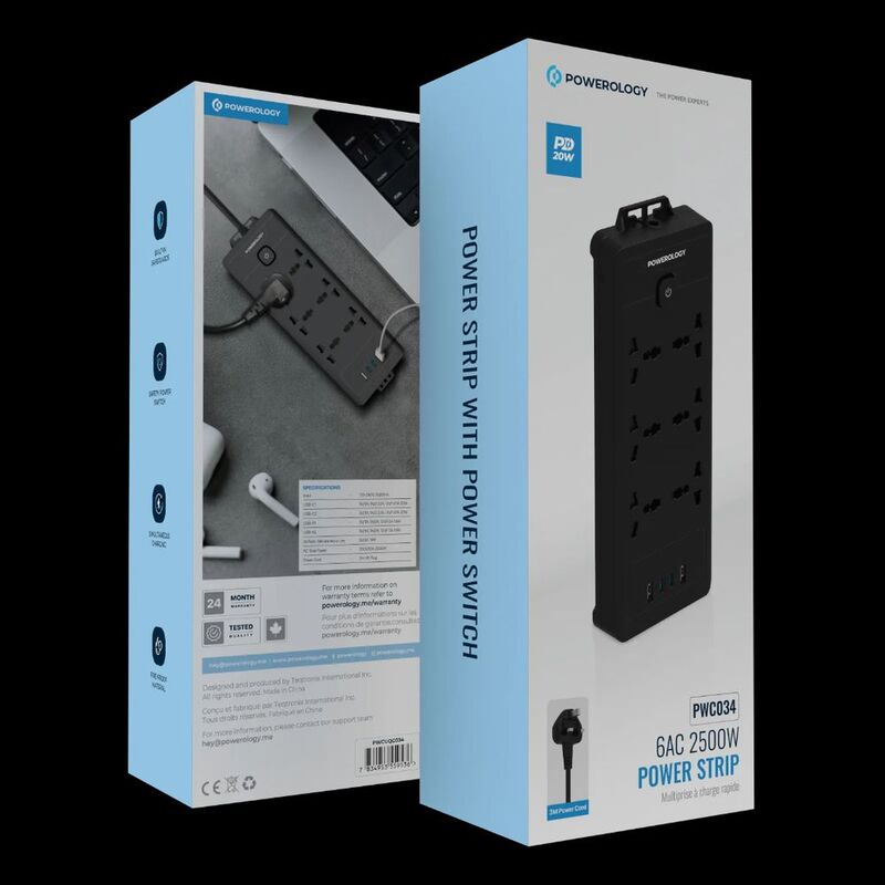 - Powerology 6AC 2500W Power Strip - Black