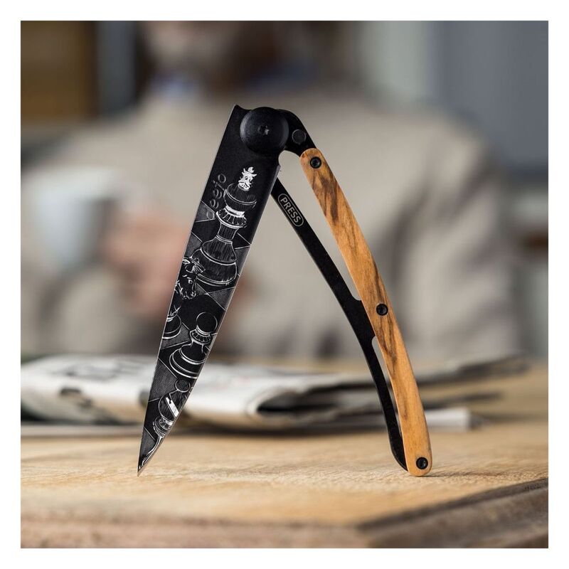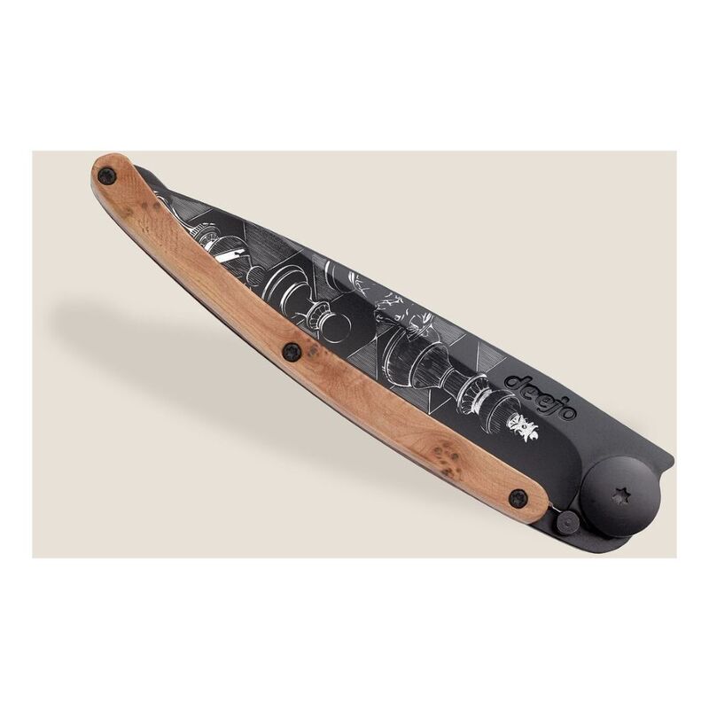 Deejo 37G Juniper Wood Pocket Knife - Chess Light Brown