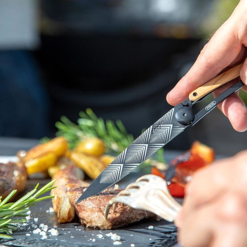 Deejo 37G Pocket Knife - Juniper Wood/Art Deco (Grey)