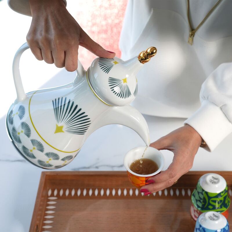 Serve tradition with a vibrant twist with the Bahja Dallah. Adorned with bold patterns and rich colors, this elegant coffee pot brings energy and artistry to every gathering. A perfect blend of heritage and modern design, it transforms your Arabic coffee rituals into joyful moments.