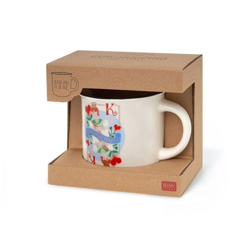 Is he still the king of your heart when he wakes up in the morning, before he's had his coffee? Tell him so, with Legami's New Bone China Porcelain Mug - Cup-Puccino King! A porcelain mug with a romantic design, perfect for a sweet start to the day.