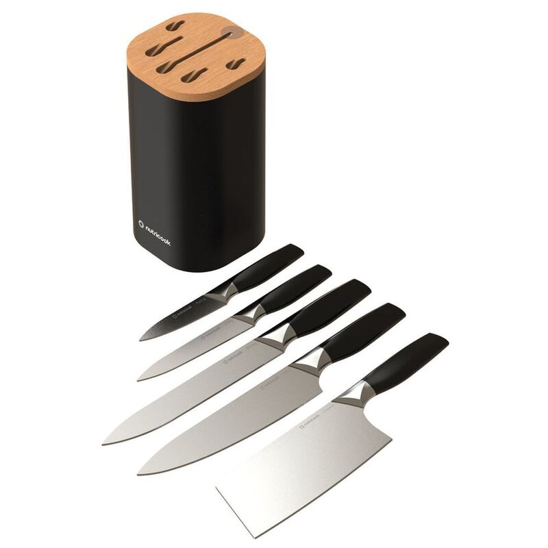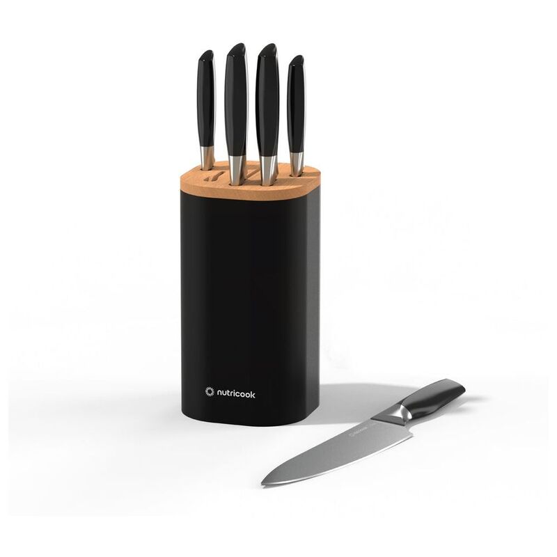 The Everyday Knife Set in Beige & Black comes with a stylish matching knife block and five essential kitchen knives. This comprehensive set offers a perfect blend of style and functionality for daily cooking tasks.