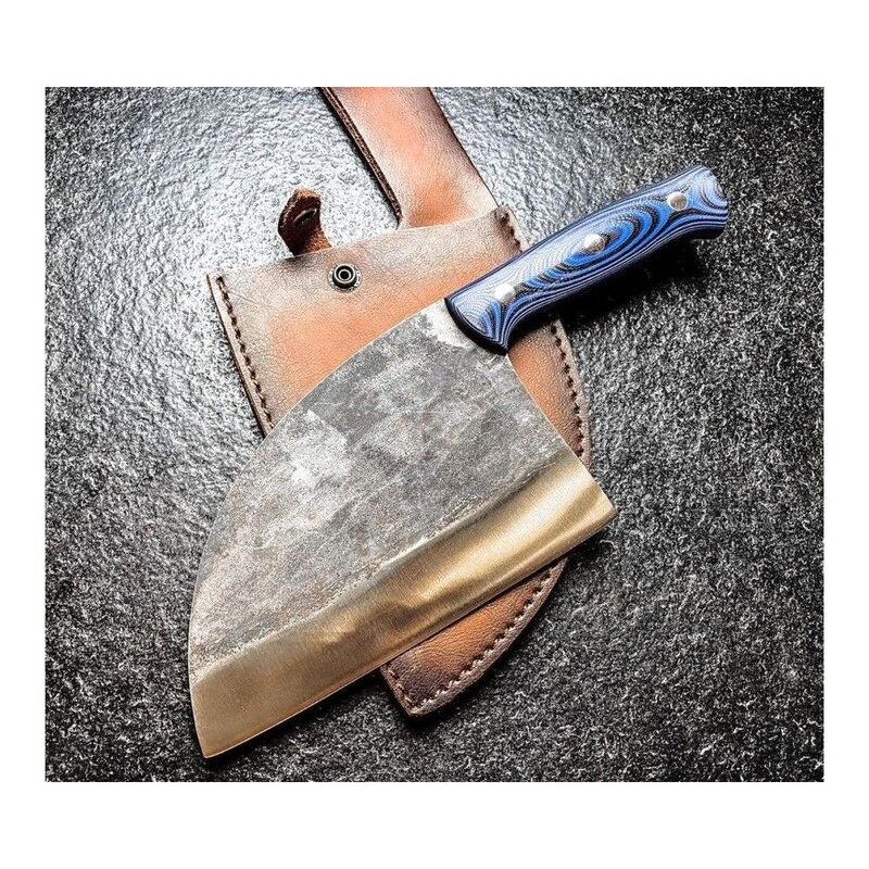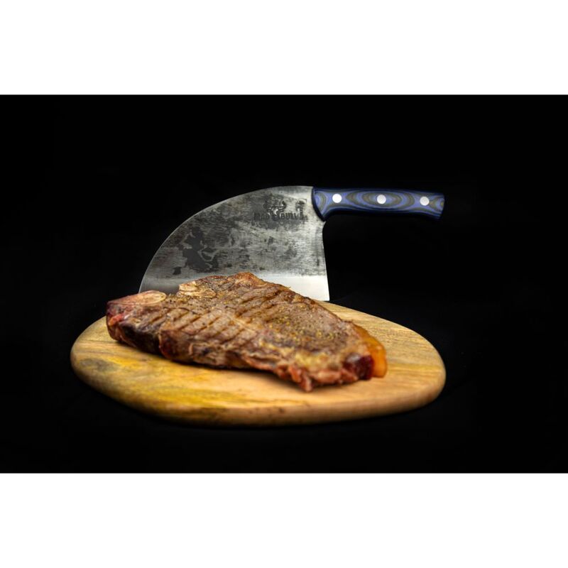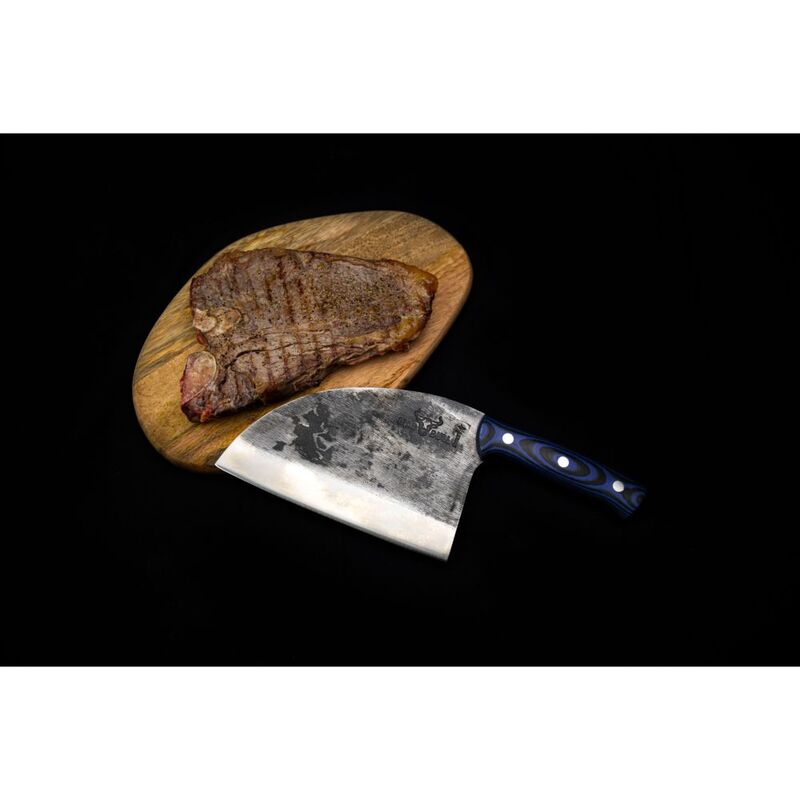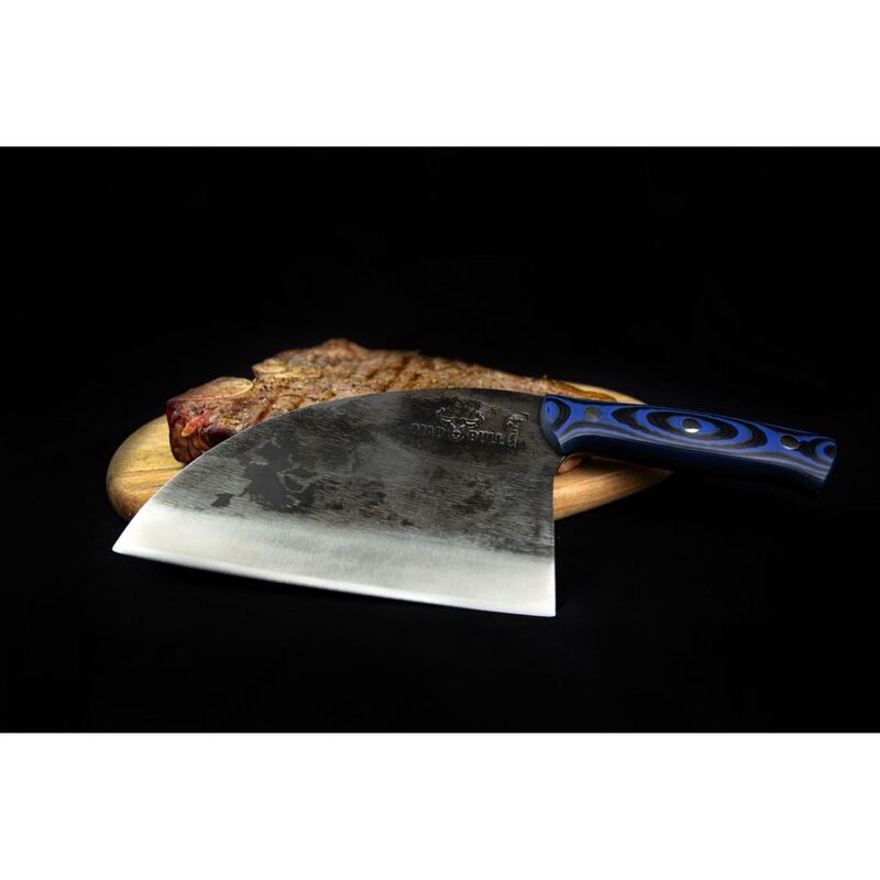 A tribute to the traditional Serbian CHEF’S KNIFE–a new, versatile kitchen cleaver. This powerful hatchet is a great tool for any cook. Unstoppable power, extreme sharpness and superb durability. The synthesis of high-quality steel, full-tang construction and hand forging created a true kitchen guillotine with incredible performance and a unique look.