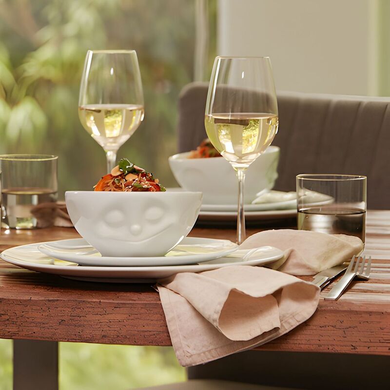 With a lower and wider cut than our other bowls, this model might just become your new favorite go-to bowl at a capacity of 11 oz. Perfectly suited for serving anything from ice cream to tapas, nuts and hearty dips. Premium porcelain bowl in white with a sculpted 'happy face' expression from the TASSEN product family of fun dishware by FIFTYEIGHT Products.