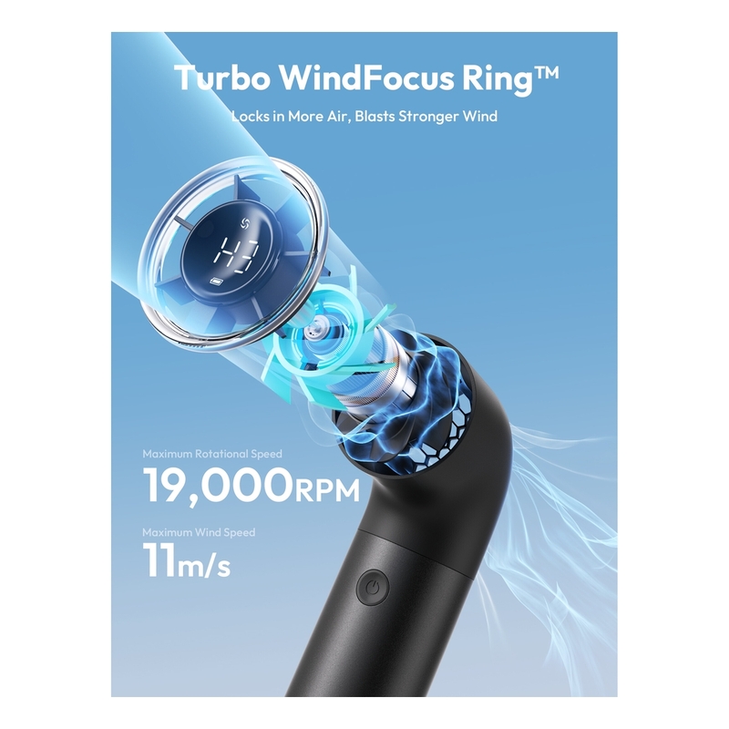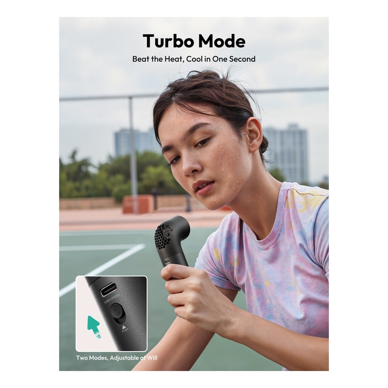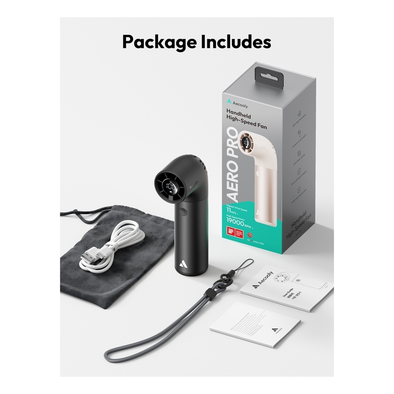 - Aecooly Mini Portable Fan powered by a robust Turbine Brushless Motor offers exceptional cooling performance with a maximum rotation speed of 19,000 RPM and wind speeds up to 11 m/s. It rapidly circulates powerful airflow, providing quick and efficient cooling, whether you're facing intense summer heat or seeking relief after exercise. The strong, invigorating breeze cools down your environment instantly, offering refreshing comfort that cuts through the heat.