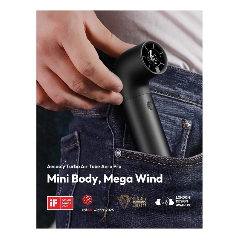 Stay cool anywhere with the Aecooly Mini Aero Pro. This compact, R-shaped handheld fan is powered by a high-speed 19,000 RPM brushless motor and offers dual-mode, 6-speed control with wind speeds up to 8 m/s for personalized cooling. The intuitive LED display lets you check speed and battery life at a glance, while the premium aluminum body combines durability with modern style. Its innovative honeycomb air intake enhances airflow efficiency, making it the perfect companion for outdoor adventures, travel, or daily use.