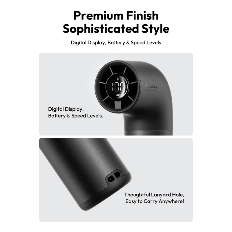 - Aecooly Rechargeable Travel Fan features a bright, intuitive LED display that allows you to easily monitor the settings with just a glance. The clear, user-friendly interface ensures you can adjust the speed, switch modes, or check battery life with ease. Whether at home, in the office, or outdoors, the LED screen offers clarity and simplicity.