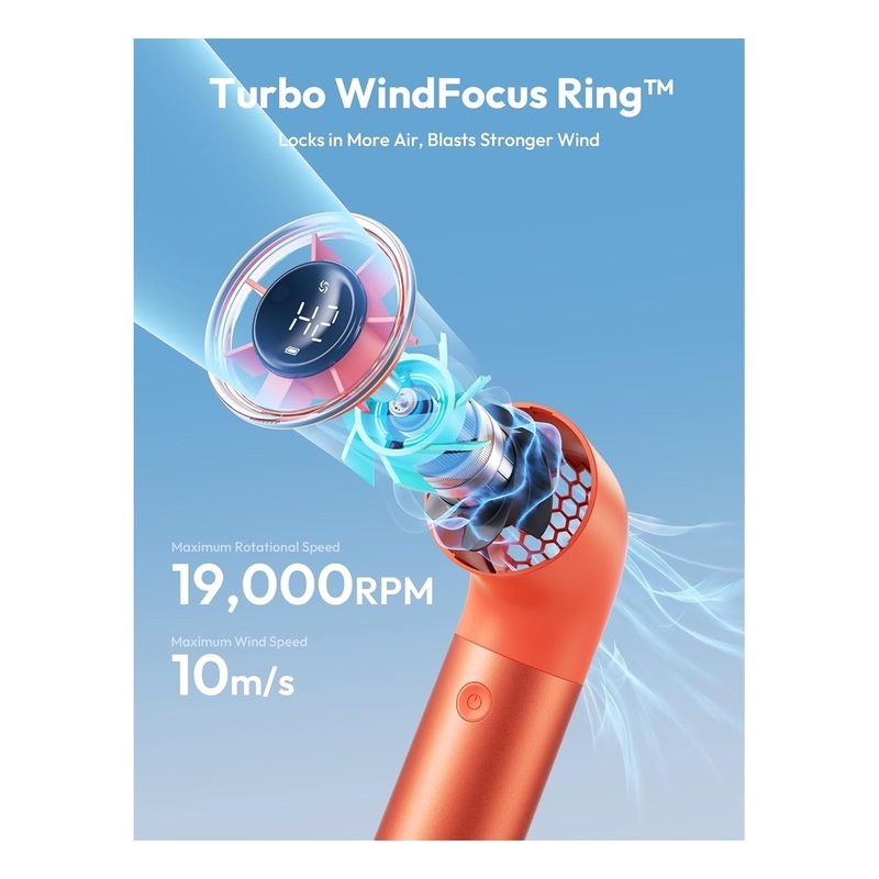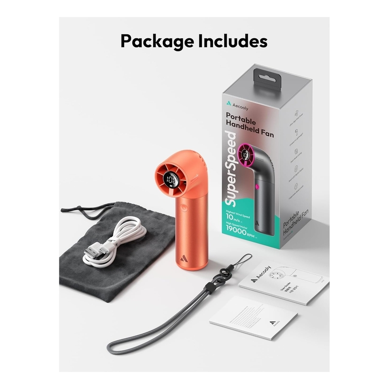 - Aecooly Mini Portable Fan powered by a robust Turbine Brushless Motor offers exceptional cooling performance with a maximum rotation speed of 19,000 RPM and wind speeds up to 11 m/s. It rapidly circulates powerful airflow, providing quick and efficient cooling, whether you're facing intense summer heat or seeking relief after exercise. The strong, invigorating breeze cools down your environment instantly, offering refreshing comfort that cuts through the heat.