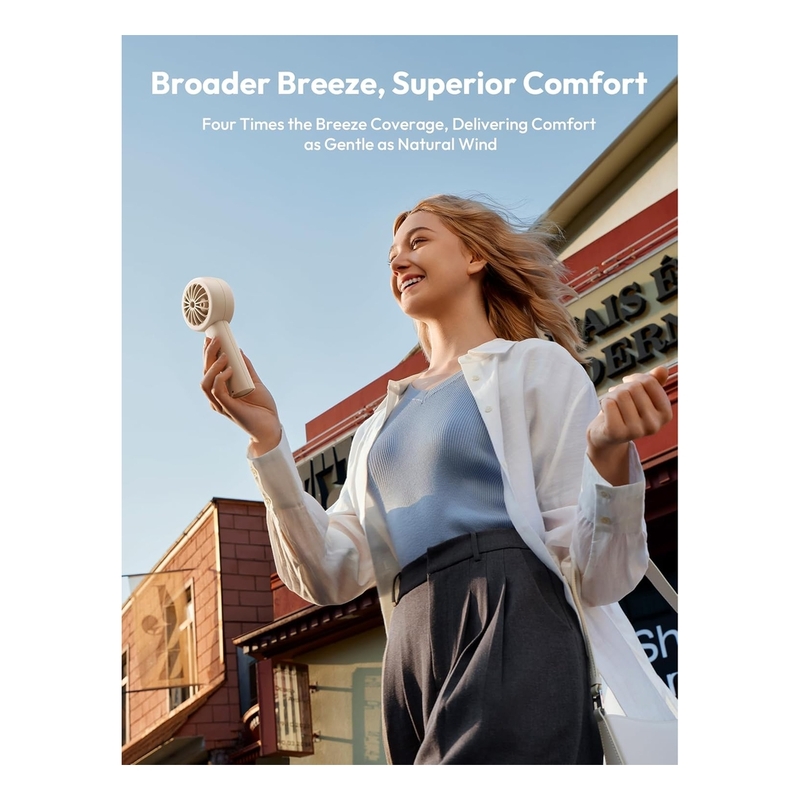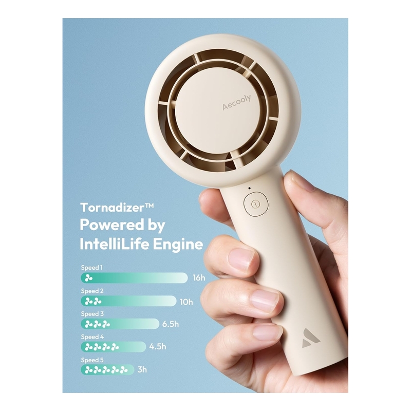 • Aecooly Portable Handheld Fan with 5 different speed options, you can easily adjust the airflow to your preference. Whether you need a gentle breeze on a warm day or a stronger gust to cool down quickly, the fan offers flexibility for all types of situations. Long-press at any gear to turn off.