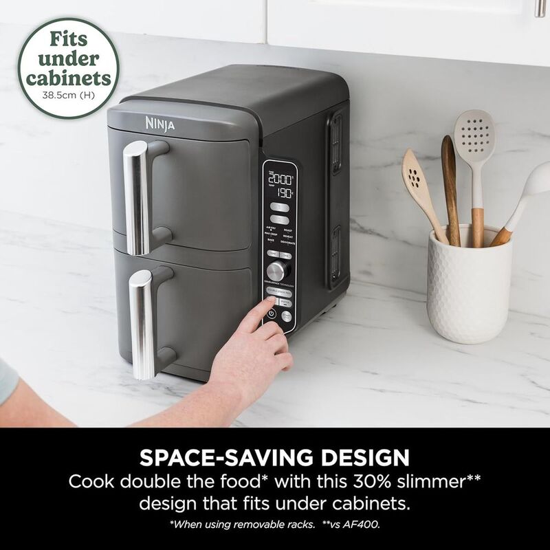 Ninja Double Stack XL Air Fryer SL400ME Vertical Dual Drawer Air Fryer 9.5L Capacity 2470W - Grey