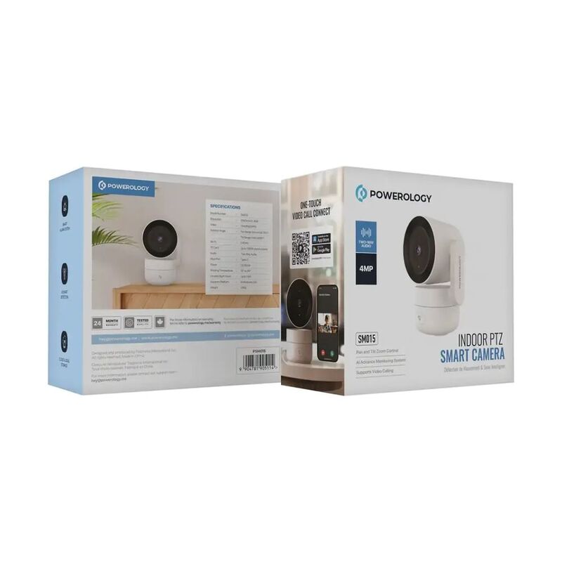 The Powerology Indoor PTZ Smart Camera is a perfect choice to secure your home. This camera delivers crystal clear images with full HD resolution of 2304×1296 pixels. You can easily Pair devices with Bluetooth or QR code scanning through AP mode. Enhanced security monitoring is made possible with advanced human body detection and custom activity monitoring zones. The pan and tilt control offer flexible and comprehensive surveillance coverage. Real time monitoring ensures you can view live footage whenever you want, and two way audio communication with echo cancellation gives clear, uninterrupted sound. Customizable sensitivity levels minimize false alarms, and 3D Noise Reduction (3DNR) with Wide Dynamic Range (DWDR) technology gives the best possible image clarity in any lighting condition. With two infrared LEDs, you can rely on effective night vision up to 8-10 meters. Rest assured about your home security with the Powerology Indoor PTZ Smart Camera – the perfect blend of advanced technology and user-friendly features for indoor surveillance.