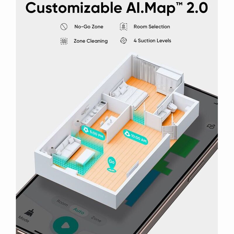 - Customizable AI.Map™ 2.0: Use the app to select specific rooms to clean, set up No-Go Zones, and use Multi-Floor Mapping for homes over more than one floor.