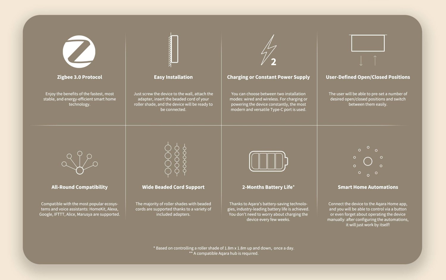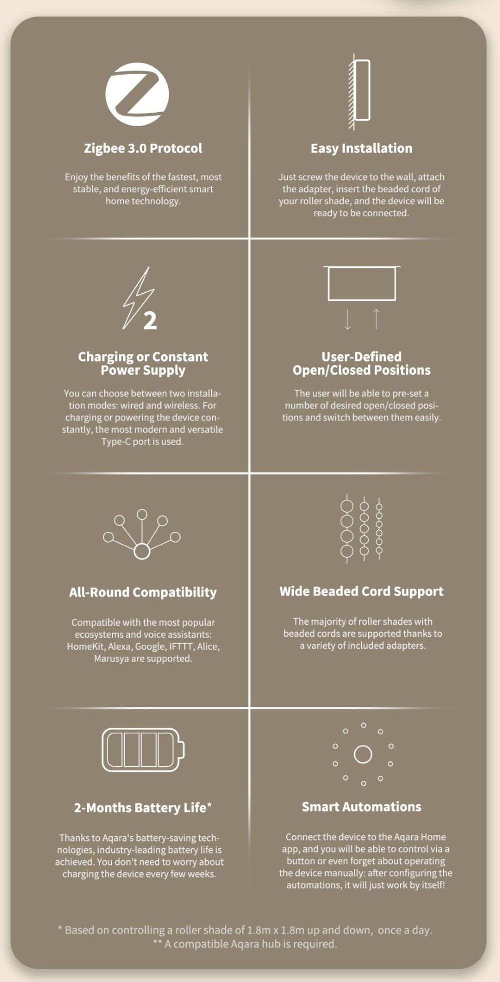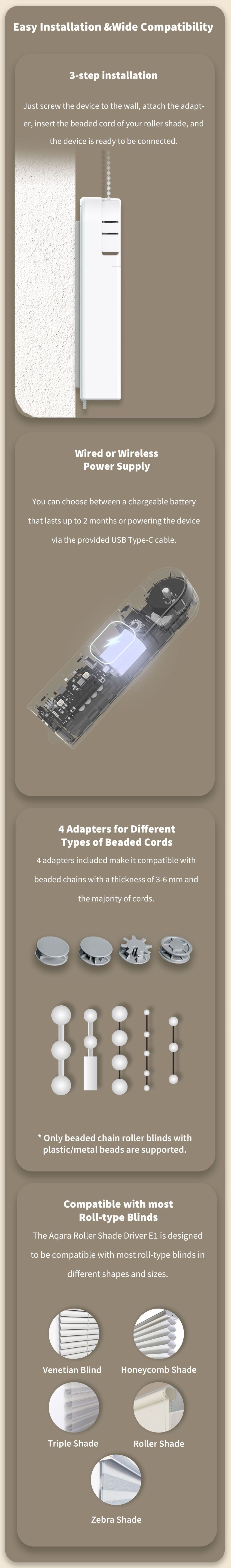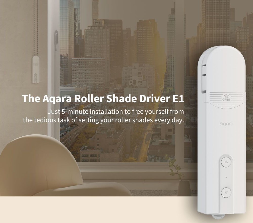 The Aqara Roller Shade Driver E1 is a revolutionary new device for automatic shutter control. Make your blinds, shades and anything else that opens with a control chain smart. The device is easy to install and battery powered.