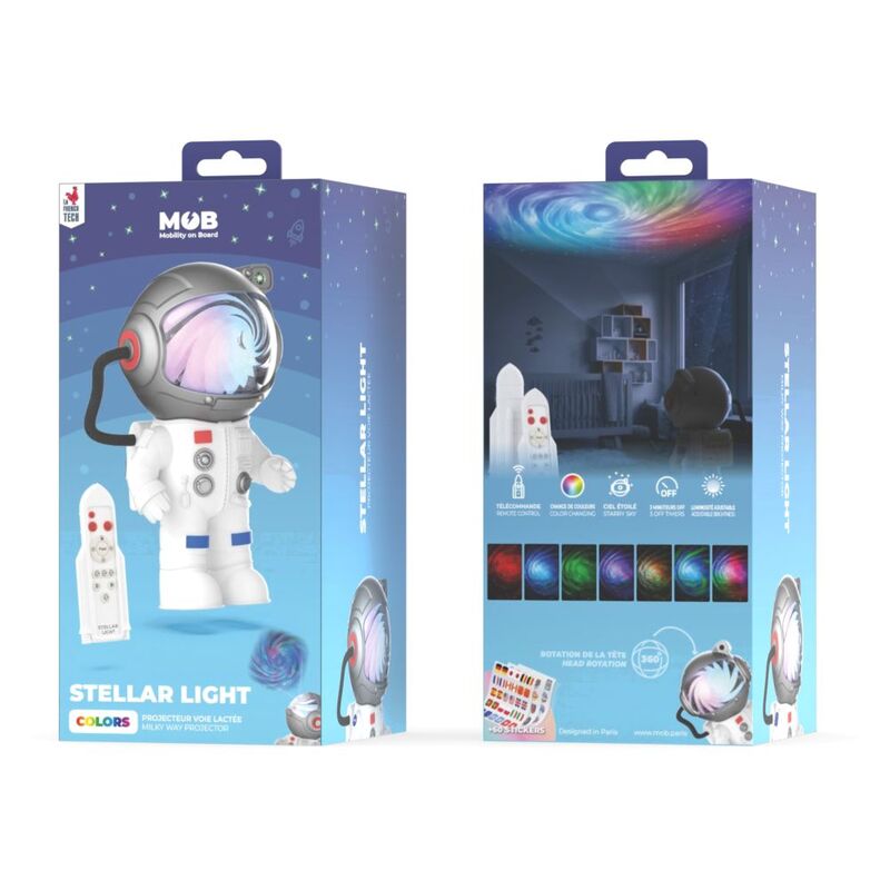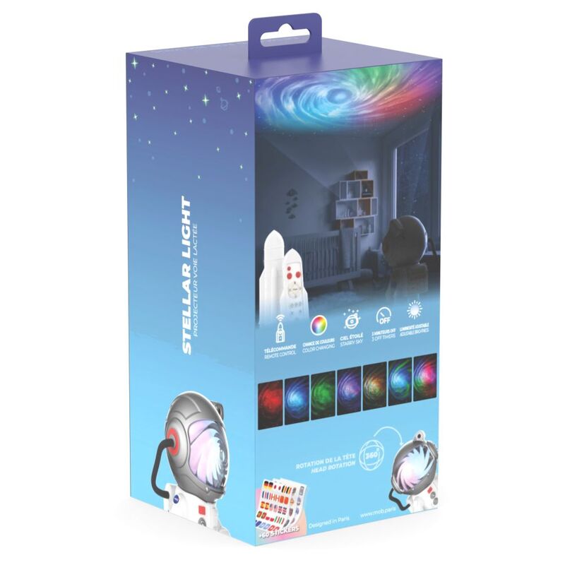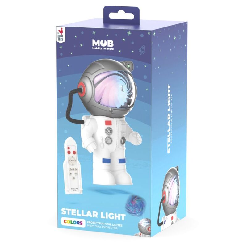With the MOB Stellar Light, in the shape of a futuristic astronaut, you can bring the starry sky into your home, for example to your child's bedroom. This powerful laser projector projects a beautiful, moving galaxy nebula and an enchanting starry sky on all your walls, in 7 different colors.