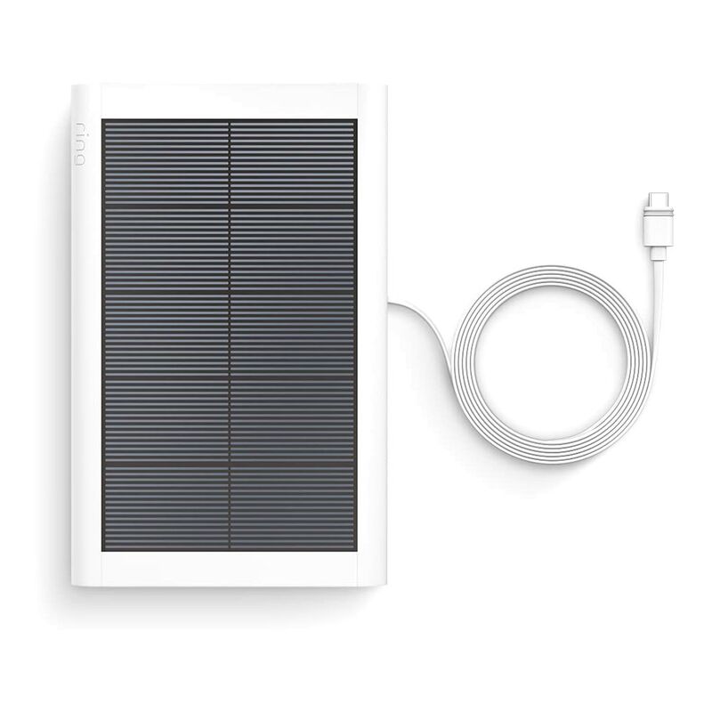 - Small Solar Panel with USB-C Cable, Adjustable Mounting Base with Cable Management, USB-C to Barrel Plug Adapter, Mounting Screws & Anchors, Cable Clips, & User Guide included.