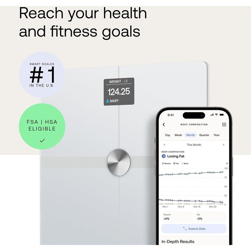 Achieve your health and fitness goals with precise weight tracking and advanced body metrics, including heart rate insights. Discover a seamless user experience and all the essentials you need to make better health part of daily life.