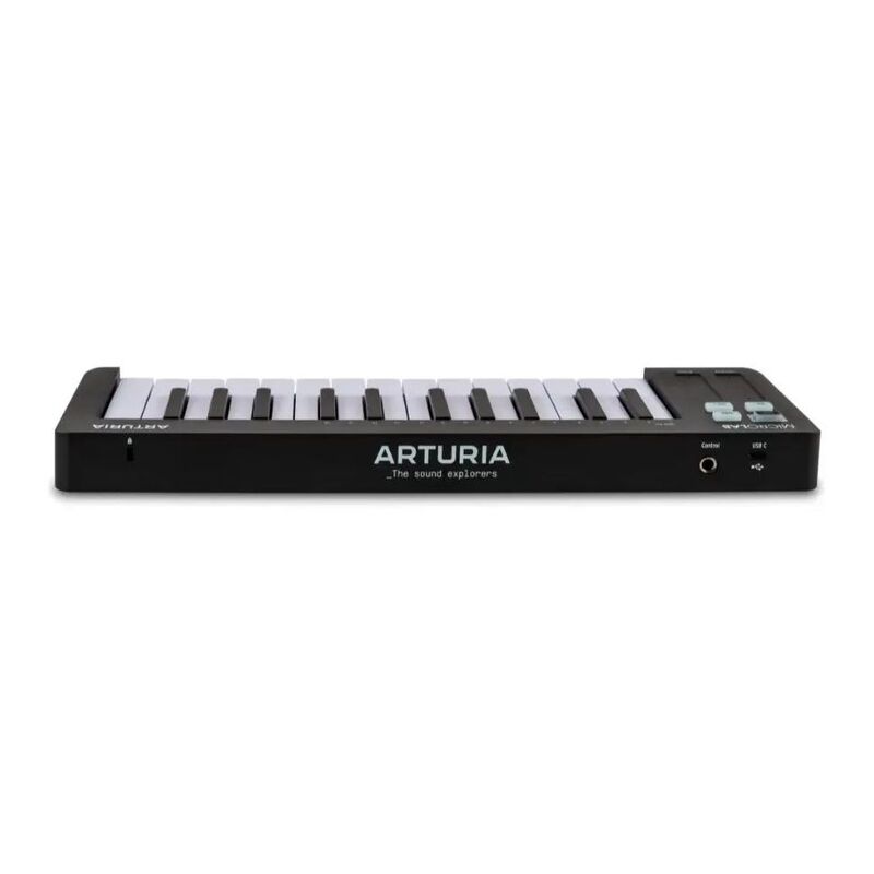 The Arturia MicroLab MK3 is a powerful yet portable MIDI controller designed for modern music creators. Featuring an upgraded slim keybed, USB-C connectivity, and a durable, lightweight design, it's perfect for mobile setups and compact studios. Enjoy seamless integration with Analog Lab Intro and Ableton Live Lite, intuitive touch-sensitive mini-keys, dual touch strips for expressive control, and a new sustain pedal input for enhanced performance. Create instantly with 500 curated sounds and intuitive plug-and-play functionality.