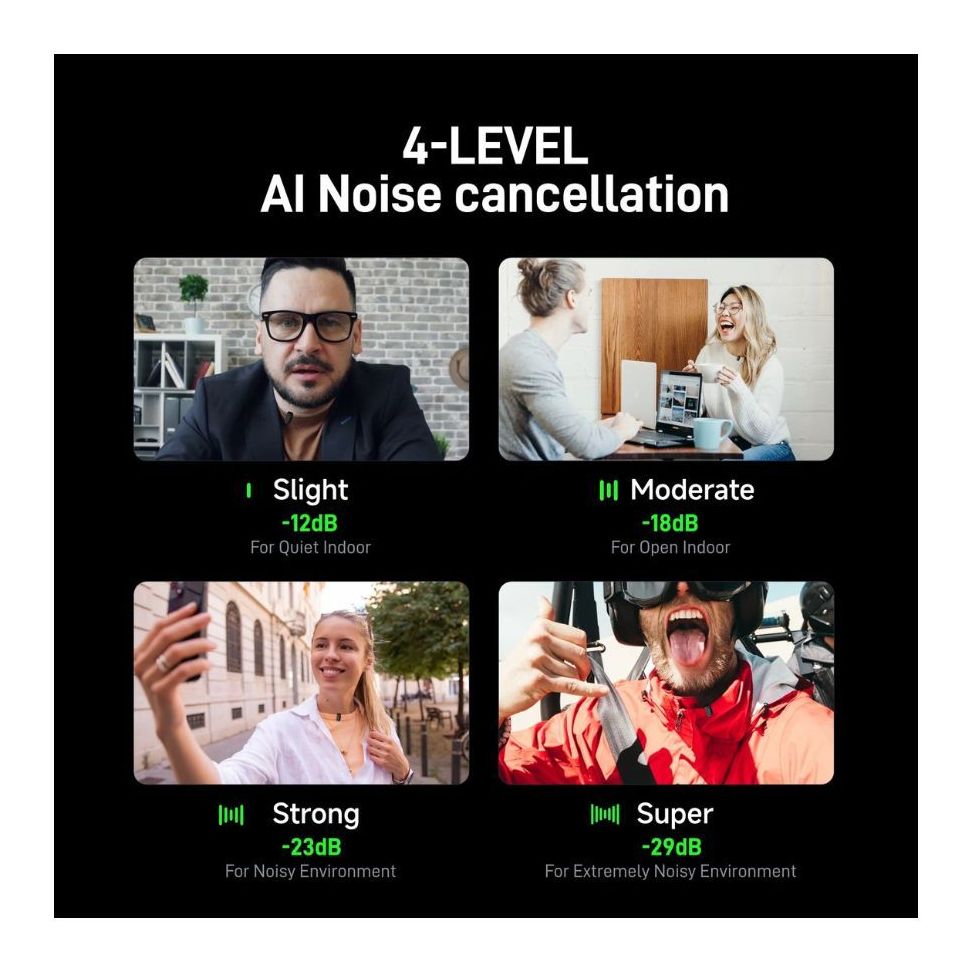 - Four-level AI noise cancellation ensures clarity even in loud environments.