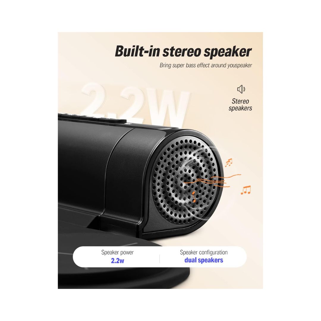 • Two stereo speakers delivering the powerful sound that reaches the volume of an electric drum kit and can be adjusted to nine different volume levels.