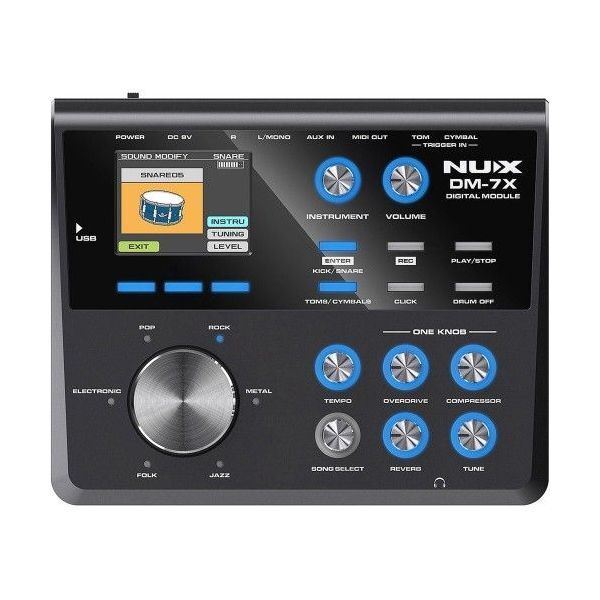 DM-7X has 30 sets of preset kits, as well as 18 sets of user kits for you to get creative. Just turn the INSTRUMENT knob and hit the pad to call up the sound assigned to it, use the UP and DOWN button to select the instrument, and edit it the way you want. Meanwhile, you can add effects on the kit with ONE KNOB function: Overdrive, Compressor, Reverb and Tune (all editable).