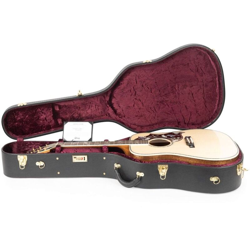 The Gibson Hummingbird Custom is a masterwork of acoustic craftsmanship that captivates both the eyes and the ears. With its stunning aesthetics and impeccable tonal character, this guitar is as much a visual showpiece as it is a serious performance instrument. Handcrafted with a solid AAA Sitka spruce top and solid koa back and sides, it delivers a tone that is rich, dynamic, and harmonically complex — blending sparkling treble, warm midrange, and deep, resonant low end. Its classic square-shoulder dreadnought body projects beautifully, whether you're strumming open chords or fingerpicking intricate melodies. The mahogany neck and ebony fingerboard with rolled edges offer smooth playability and a premium feel, making the Hummingbird Custom an inspiring companion for both stage and studio. Available now at Sadek Music, where craftsmanship and tone meet excellence.Dressed-up dreadnought styleAs Gibson's first square-shoulder body shape, the Hummingbird brought a subtle new body style and a bold new look to the company's dreadnought family in 1960. To celebrate this milestone acoustic, Gibson has adorned the Hummingbird Custom with handcrafted hummingbird inlays made from genuine abalone and mother-of-pearl all over the body and neck. A stunning double-ring rosette with an abalone-filled middle sits next to the classic tortoiseshell pickguard that's engraved with hummingbirds and blossoms.Hand-scalloped top bracing delivers exceptional toneAnother feature of the Hummingbird Custom is Gibson's weight-relieved hand-scalloped top bracing. This bracing provides strength while allowing the top to vibrate with a piston-like action, which is another one of Gibson's secrets to exceptional tone. For over 100 years, Gibson artisans have known the truth that the top of an instrument is not just a vibrating wall. Gibson carefully scallops and arches each top brace to focus the sound to the center of the guitar top. This technique is one of the reasons why artists, sound engineers, and listeners — including many here at Sadek Music — have heralded the sound of a Gibson as one of the world's finest instruments.Nitrocellulose lacquer finish for sound that improves with ageGibson Montana uses a nitrocellulose lacquer finish on all their acoustics for a reason. The lacquer finish is thinner than polyurethane, which allows the wood to vibrate more freely for better tone and projection. Thanks to the lacquer finish, as your Hummingbird Custom ages, its sound actually improves — just like the great violins of the 18th century. The Hummingbird Custom is at once a collector's dream, a working musician's axe, and a treasured family heirloom.Classic Gibson craftsmanship: impeccable sound, looks, and playabilityGibson's reputation as a fine guitar builder dates back to the late 1800s. Handcrafted since day one by some of the most skilled luthiers, Gibson acoustic guitars have inspired countless players around the world. When you pick up a Gibson acoustic, you know you're getting the finest tonewoods, quality hardware, and incredible attention to detail. These instruments are built to sound great and stand the test of time. After moving from Kalamazoo, Michigan, to Nashville, Tennessee (where Gibson electric guitars continue to be made), Gibson finally settled their acoustic operation in Bozeman, Montana, where they continue to produce some of the finest guitars on the planet. Now available at Sadek Music — your trusted source for premium Gibson guitars and accessories.Gibson Hummingbird Custom Acoustic Guitar Features:Classic acoustic guitar built for today's playerSitka spruce top for clear tone and powerful projectionSolid koa back and sides for warm, round soundSquare-shoulder body offers a versatile toneDetailed design and jaw-dropping aesthetic touchesRolled fretboard edges give you a comfortable playing experienceWeight-relieved hand-scalloped top bracing provides strength and enhanced vibration on the guitar's topStunning double-ring rosette with an abalone-filled middle sits next to classic tortoiseshell pickguard that's engraved with hummingbirds and blossoms