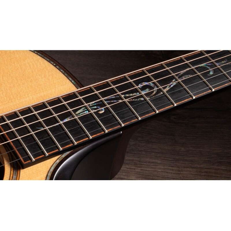 • Headstock: West African ebony overlay and binding, koa purfling, Spring Vine inlay
