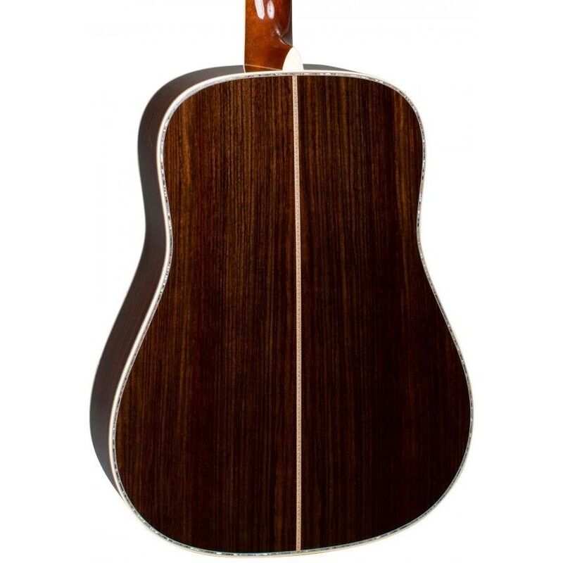 The most sought-after and decorated of the Martin dreadnoughts, the flagship D-45, looks, sounds, and plays better than ever for 2018. Martin's choice of antique appointments — butterbean gold tuning knobs, hand-set abalone inlays, and an aged toner finish — give this guitar lustworthy prewar visuals. But modern advancements, including a slimmer-taper neck and bass-enhancing forward-shifted scalloped X-bracing, make the latest D-45 a top performer in any hands. The top-grade spruce soundboard and East Indian rosewood body, mated by Martin's coveted dovetail neck joint, sound as rich and full as ever. And like any high-end Martin, your D-45 is sure to appreciate in tonal value with every successive strum. Get the best the Martin standard series has to offer with the new D-45.