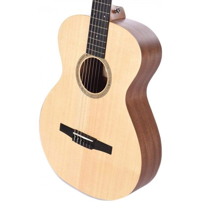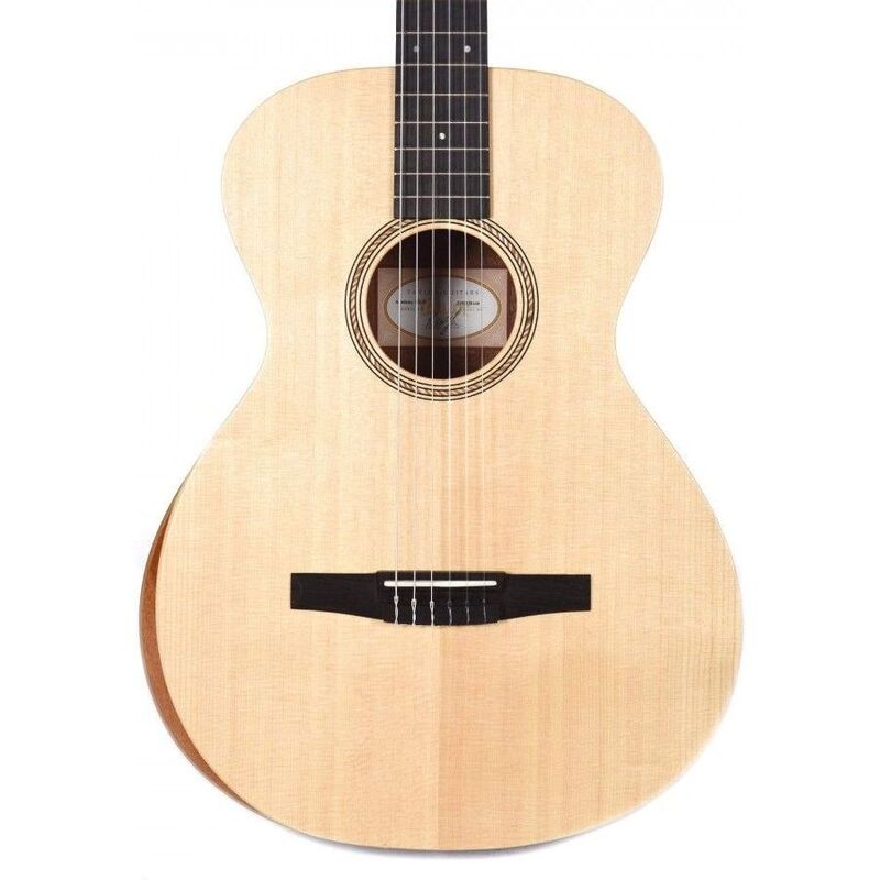 The Taylor Academy A12-N features a Grand Concert body with a Lutz spruce top, layered sapele back and sides, and a mahogany neck with a genuine ebony fingerboard.