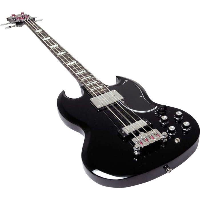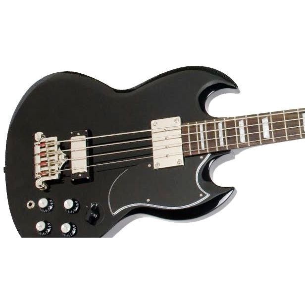 The Epiphone EB-3 solidbody Four-string bass gives you big tone and fast playability, thanks to its combination of a long-scale set-neck design, SG-style double-cutaway body, and dual-pickup configuration. The EB-3 bass's mahogany body is equipped with a heavy-duty bridge, a Sidewinder bridge pickup, and an NYT Bass mini-humbucker for maximum sustain and a range of great tones. The mahogany neck is slim and comfortable, and its rosewood fingerboard includes classy trapezoid inlays. Sure, it's a very affordable instrument but the EB-3 is also a great-playing tone monster of a bass!