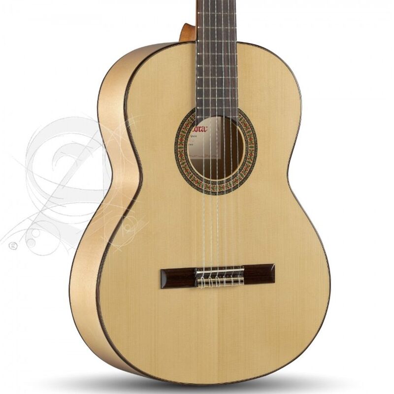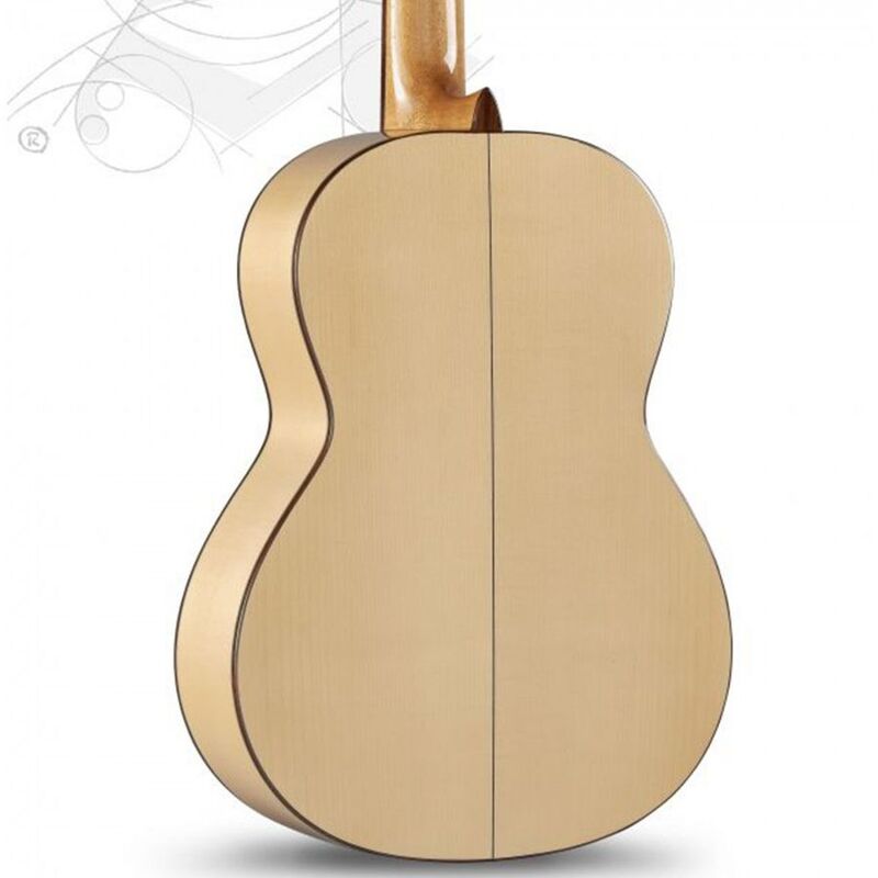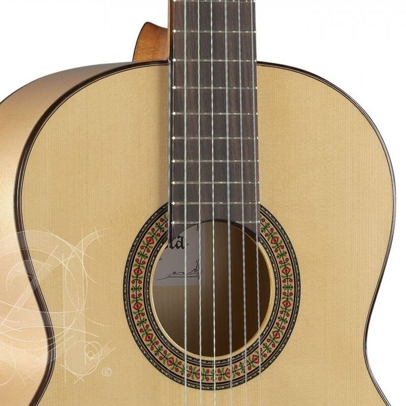 With a solid German Spruce top and a light color of Sicomoro used for back and sides, the Alhambra 3 F model has a very flamenco aesthetic.