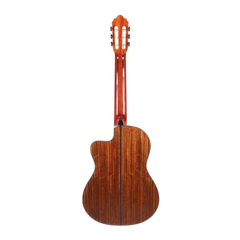 Our stunning new 770 Series Thinline Cutaway Classical Guitar delivers master luthier craftsmanship, uncompromised tone and outstanding player comfort. Featuring a solid Red Cedar top, with patented ToneFlow Spanish fan bracing, and a 7cm Thinline Walnut body, the VC774TCE yields a superbly detailed and balanced tone despite its slim body. Its premium Mahogany neck with Amara Ebony fretboard is beautifully playable and responsive. The high-quality onboard Fishman Sonitone soundhole mounted preamp pickup system makes this guitar the ideal live performance companion.