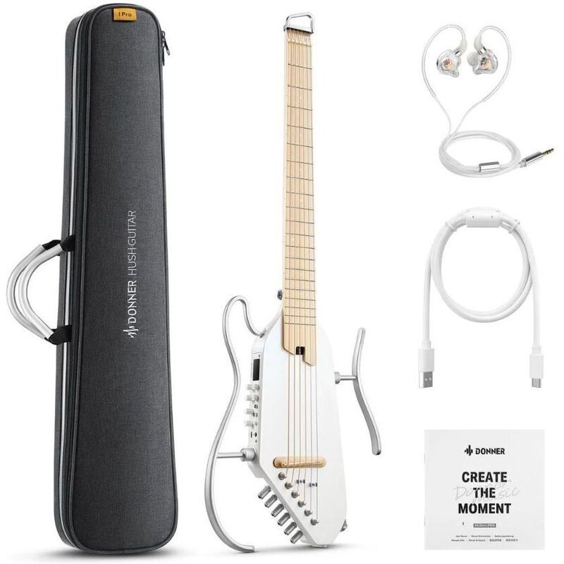 Donner Hush-I Pro Acoustic-Electric Travel Guitar Kit - White