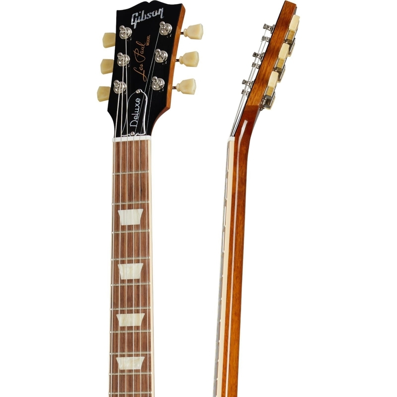 From head to toe, the Gibson Les Paul Deluxe '70s Electric Guitar epitomizes what makes a vintage LP so appealing. To start, you get a non-weight-relieved mahogany body — identical to an original — with plenty of warmth and balance that will serve you well in a wide variety of sonic applications. Its maple top imbues this formidable 6-string with some welcome brightness. An absolute delight to play, the mahogany neck is shaped to a rounded "C" for superior playability and maximum comfort, and it's capped with a super-smooth rosewood fingerboard. Of course, this guitar wouldn't be a true Les Paul Deluxe without a pair of mini humbuckers, which offer a brighter, clearer tone than their beefier siblings. Made of nitrocellulose lacquer, even the finish is true to the times. It all adds up to an exquisite instrument that embodies the look, feel, and sound of a vintage Les Paul.