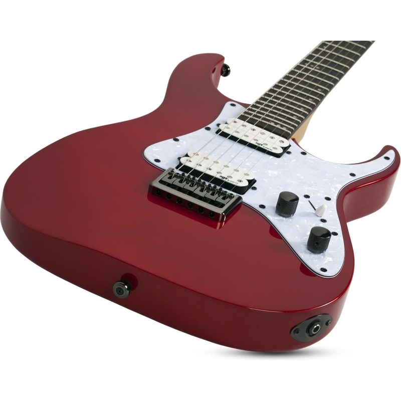 Its roster features a number of both active and passive models, reaching from lower intermediate to upper intermediate classes. Banshee 6 SGR starts off with a flat-top Banshee body, bolt-on neck, 25-1/2" scale, and Schecter electronics and hardware. Five conservative color options are available for this model. Core construction features include a solid basswood body (flat top, Strat-like pickguard, contoured back), maple neck (C profile, four-bolt joint), and rosewood fingerboard (extra jumbo frets, offset dot inlays, 14" radius). Schecter`s Diamond Plus pickups, string-through hardtail bridge, and die-cast tuners complete this affordable shredder.