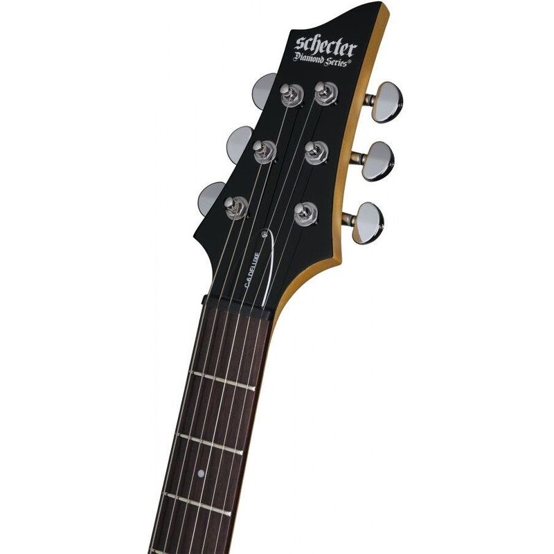 is a tremendous solid body electric guitar, merging traditional construction (Basswood body, bolt-on Maple neck, 24-frets Rosewood fingerboard) and huge sounds (Schecter Diamond Plus humbucking pickups with ceramic magnets), that will fit most kinds of Hard-Rock and Heavy-Metal styles.