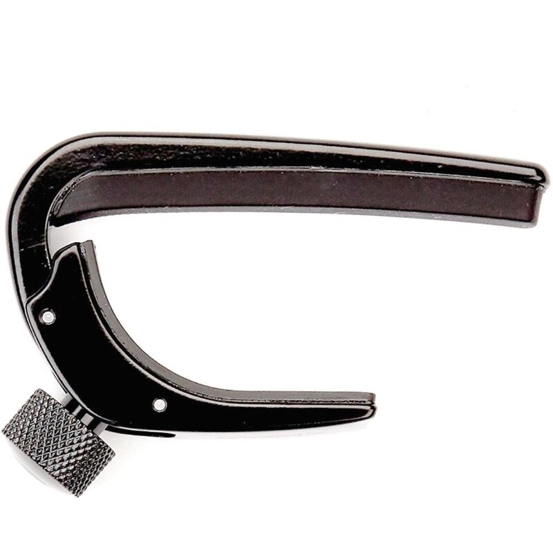 The D'Addario Pro Capo is made from aircraft-grade aluminum for use on acoustic and electric 6- and 12-string guitars. The Pro Capo assures buzz-free, in tune performance at any fret. The patented micrometer adjustment mechanism allows the player to dial in the exact tension needed for clear ringing notes without excessive force in any position on the neck. This greatly reduces the need to retune your guitar during and after capo use. The sleek construction can withstand the toughest playing or touring schedule while adding very little additional weight or obstruction to the instrument.