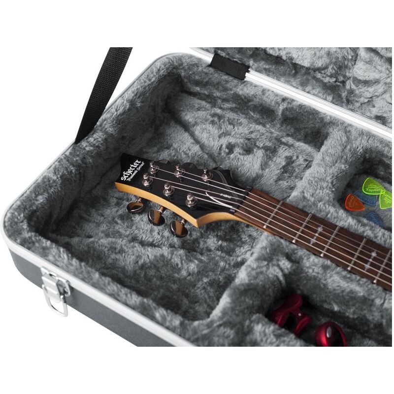 You put the time and money into finding that just-right guitar, so now it's time to find that just-right case for protecting your instrument. The Gator Cases GC Electric Guitar Case offers premium protection for your electric guitar with heavy-duty molded ABS plastic that is impact-resistant and reinforced with aluminum valances and lined with EPS foam on the interior. The designers at Gator didn't stop there. They also threw in an ultra-cool interior LED light fixture that turns on as you open the case. No more fumbling for your tuner, picks, or strings as you unpack in another dimly lit venue. Grab a Gator Case and see why it is one of the preferred cases here .