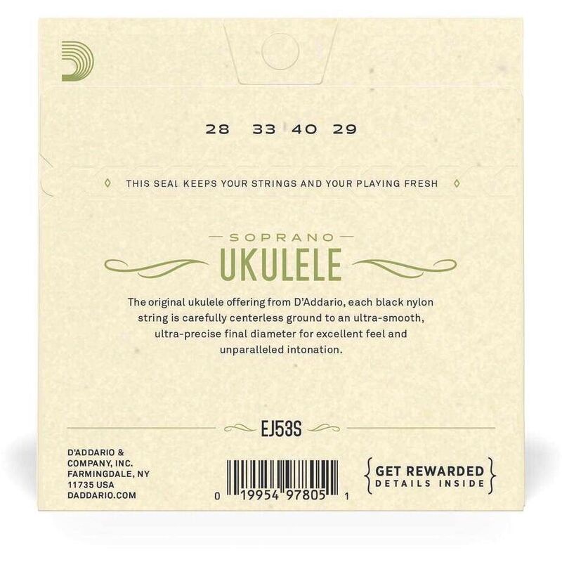 EJ53S is a black nylon string set for soprano ukulele. Pro-Arté Black Nylon sets the standard in terms of warm ukulele tone, intonation, and dynamic response.