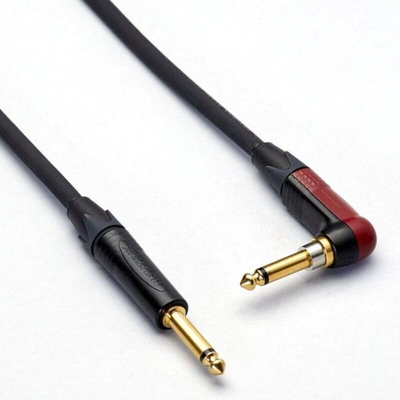 Shielded cable Professional series for music instruments, made with one 6,3 mm. mono Neutrik (R) jack and one 6,3 mm. angled SILENT Neutrik (R) jack. Gold-plated connectors. Length 3 m.