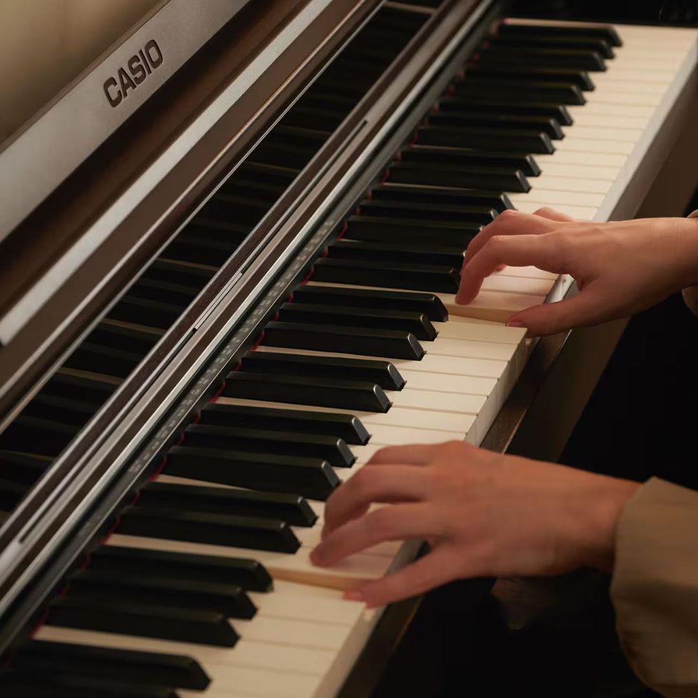 The Casio CELVIANO AP-S450 combines authentic grand piano tradition with modern innovation in a slim, elegant design. Powered by the Multi-Dimensional Morphing AiR sound source, it delivers rich resonance, expressive nuances, and natural tonal changes. The Smart Hybrid Hammer Action Keyboard CELVIANO Edition provides responsive touch with spruce-resin hybrid keys for a luxurious feel. A refined three-pedal system ensures delicate, accurate pedal control. Its 4-speaker system with Sound Mode and headphone optimization creates an immersive playing experience. With features like the Visual Information Bar, Instant Re-Play, wireless MIDI/audio, and CASIO MUSIC SPACE app support, it redefines piano performance at home.