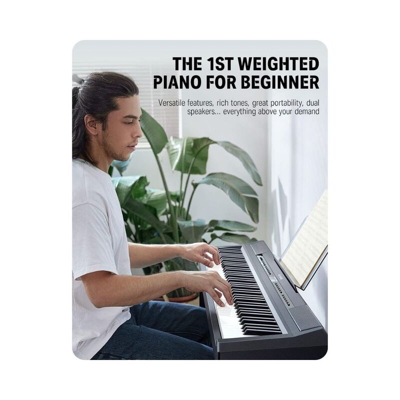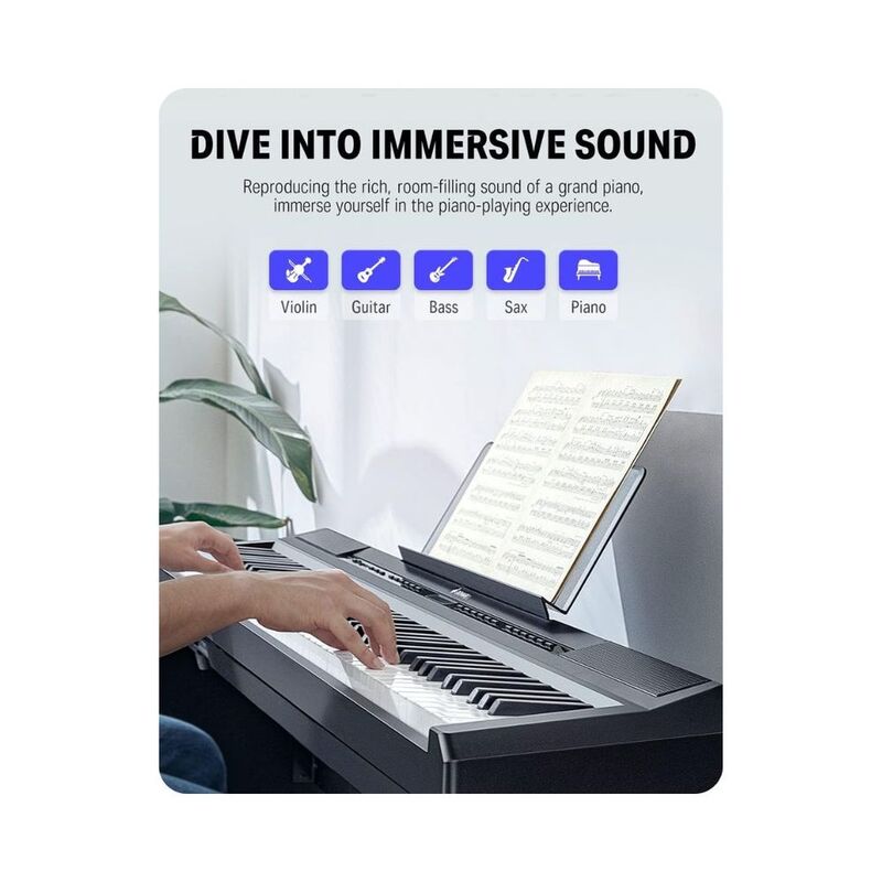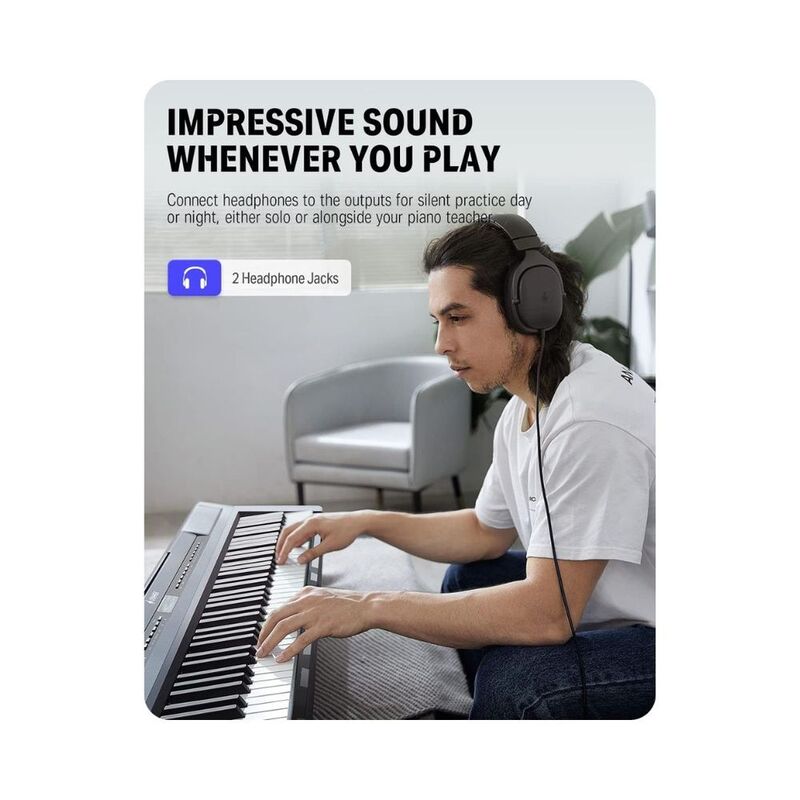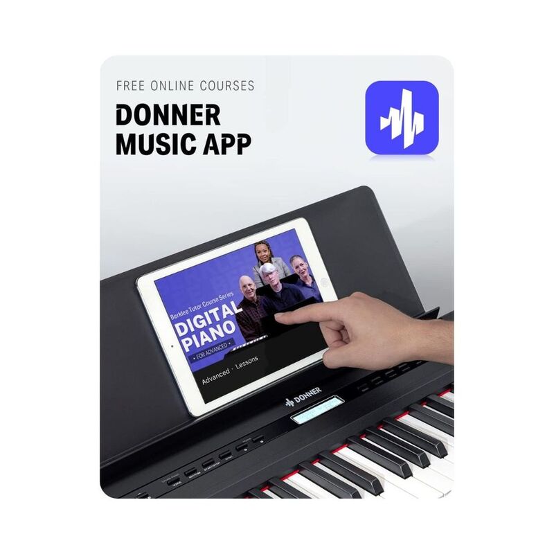 The Donner DEP-20 Digital Piano is a versatile instrument suitable for beginners and experienced players. With 88 weighted keys and hammer action, it offers a realistic piano feel in a compact and stylish design. Backed by decades of development, it provides rich sound and expression for years of musical growth. Designed to inspire children’s passion for music, it offers a wide range of features for learning and creativity. Experience the authentic pedal response of a grand piano and enjoy exceptional tone quality with 128-note polyphony and 238 high-quality tones. Explore innovative double-tone settings for expanded musical possibilities. With a wooden stand and three pedals included, it’s practical and attractive for home decoration. Whether practicing on stage or at home, enjoy immersive music through headphones or an amplifier, fostering interest and skill development.