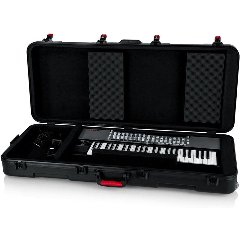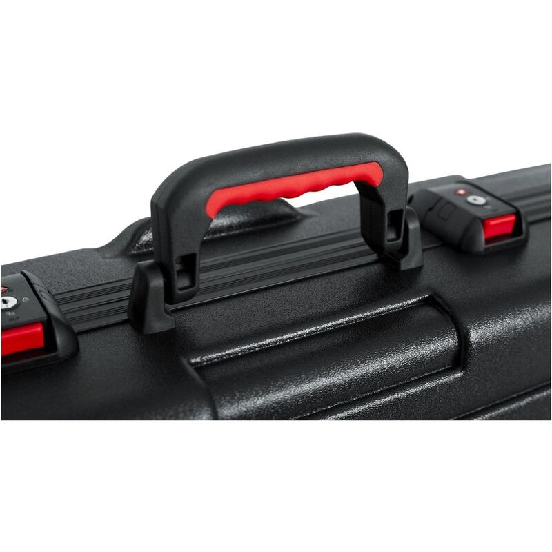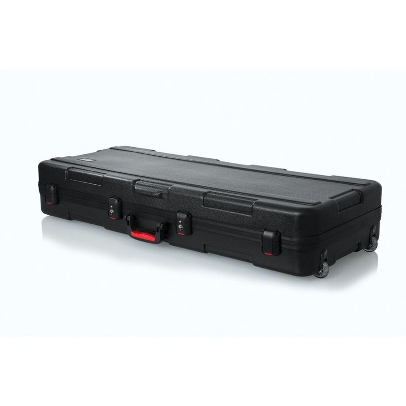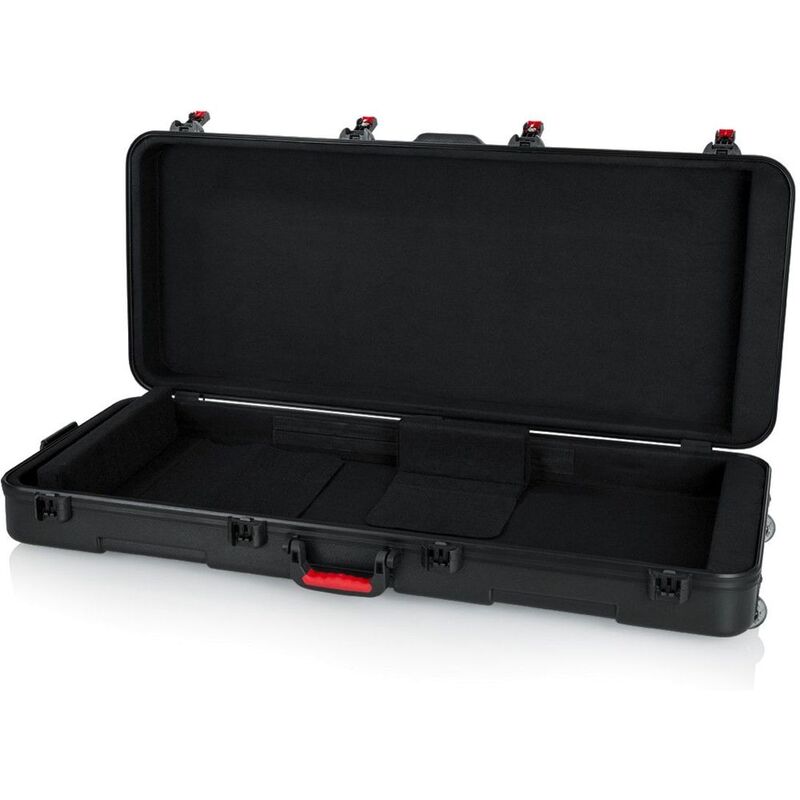 Whether you fly with your keyboard or just want a rugged case for it, the Gator TSA/ATA series has your number. This deluxe case's internal cavity provides a secure fit for your 61-key digital piano or keyboard instrument and features a plush black interior to prevent scuffs and damage. The tough molded polyethylene shell that's built to military and ATA spec will give you peace of mind when you're sitting on the plane, and the TSA-approved locking center latches could save you some headaches at the airport. A durable injection-molded ergonomic handle and recessed wheels make even the heaviest keyboards manageable to haul through the airport or up to the stage. keyboardists stand behind their Gator TSA/ATA cases for their exceptional strength and protection in transit.