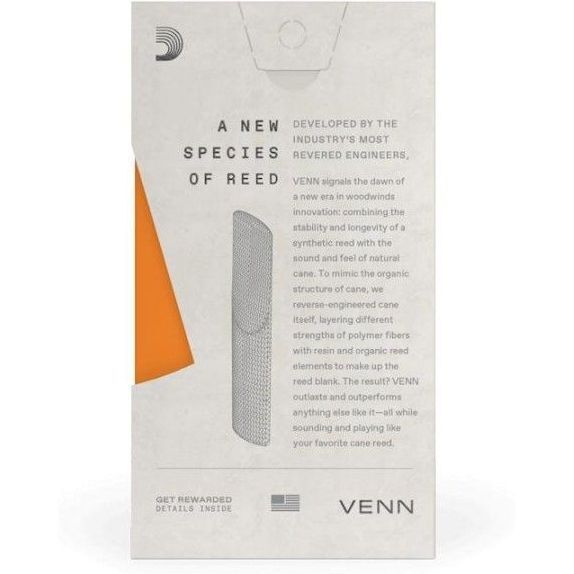 When it comes to capturing the essence of genuine cane in a hard-working synthetic reed, D'Addario VENN Generation 2 Reeds more than fit the bill. Though constructed from layers of polymer fibers, resin, and reed particles, VENN Generation 2 reeds deliver the real-deal feel of cane, which is great for traditionalists seeking a synthetic replacement and beginners wanting the best of both worlds. Sweetwater players are stunned by the natural feel and organic tone these reeds produce — its enhanced durability is sure to handle your next performance season. Make the switch to synthetic in confidence with D'Addario's VENN Generation 2 Reeds!