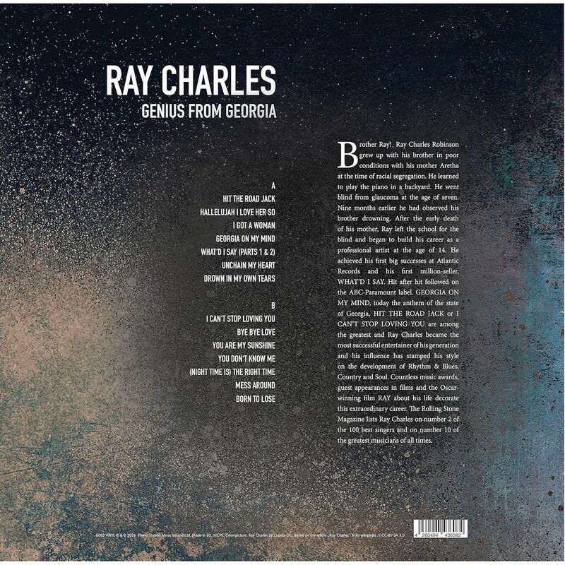 Ray Charles, the legendary singer and musician, takes us on a journey through his roots with his album 'Genius from Georgia'. Hailing from the southern state known for its rich musical history, Charles showcases his mastery of multiple genres such as R&B, soul, and blues. His soulful vocals and impeccable piano skills are at the forefront of this album, while his heartfelt lyrics and emotional delivery make each song a heartfelt experience. From the upbeat and lively tracks to the slow and contemplative ballads, 'Genius from Georgia' is a true testament to Charles' talent and the influence of his home state on his music. A must-listen for any music lover.