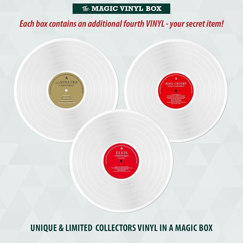 - The high-quality gift box contains these three tracks on 180g colored vinyl: Bing Crosby's "White Christmas," Frank Sinatra's "Christmas," and Elvis Presley's "Christmas (The Christmas Album)." Randomly selected boxes contain a special "secret item" as a surprise!