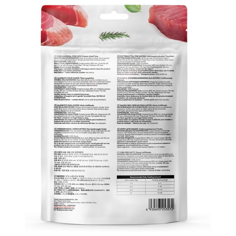 Freeze-dried tuna for cats is a top-quality protein source crafted from real tuna. Through a meticulous process of freezing the tuna at low temperatures and gently removing moisture, its natural flavors, nutrients, and texture are impeccably preserved. This choice is highly favored by pet owners seeking to offer their feline companions a wholesome, minimally processed treat or meal.